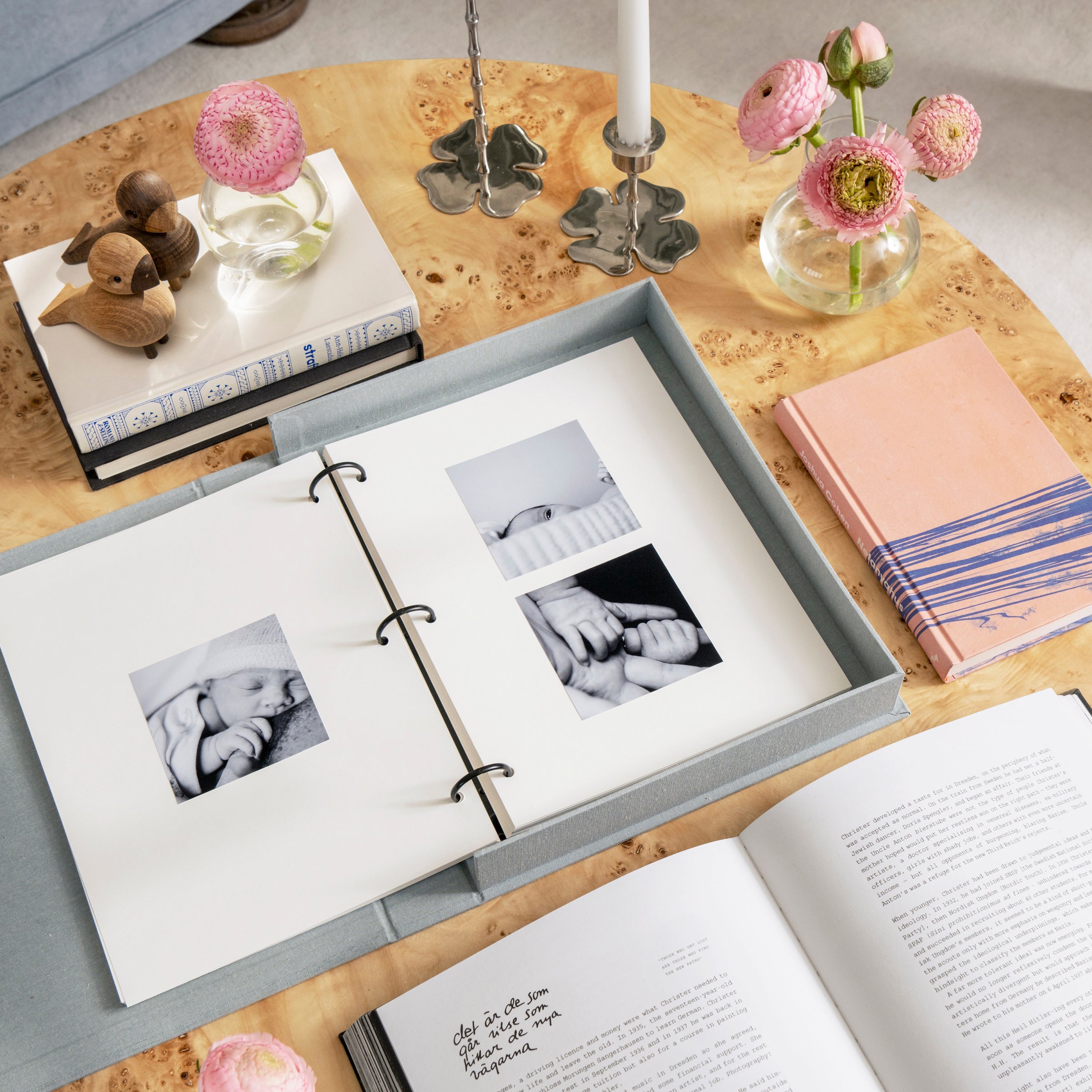 Celebrate your little one’s milestones with the coffee table baby album A Star Is Born, featuring a grey cloth cover with gold foiled text. High-quality white photo paper awaits inside, ready to be decorated. Place it on your coffee table to keep those moments always within reach while elevating your home decor. From Printworks, a brand we love.