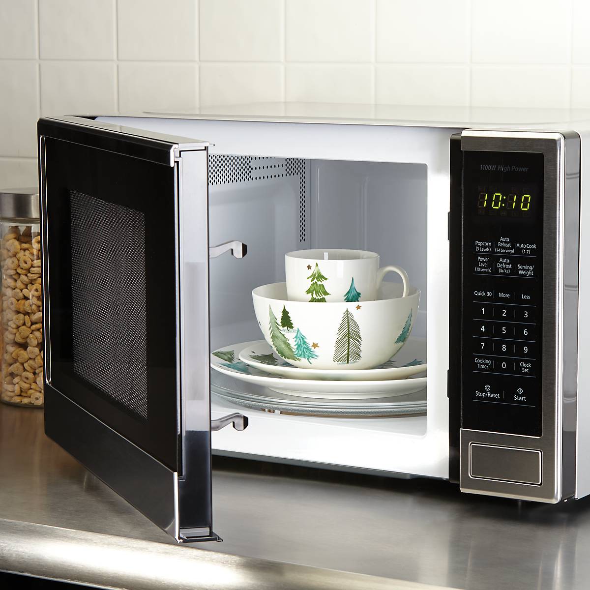 Four white ceramic bowls feature charming painted evergreens and glittering stars along the sides. Ideal for serving small meals, the bowls also make a touching holiday gift.