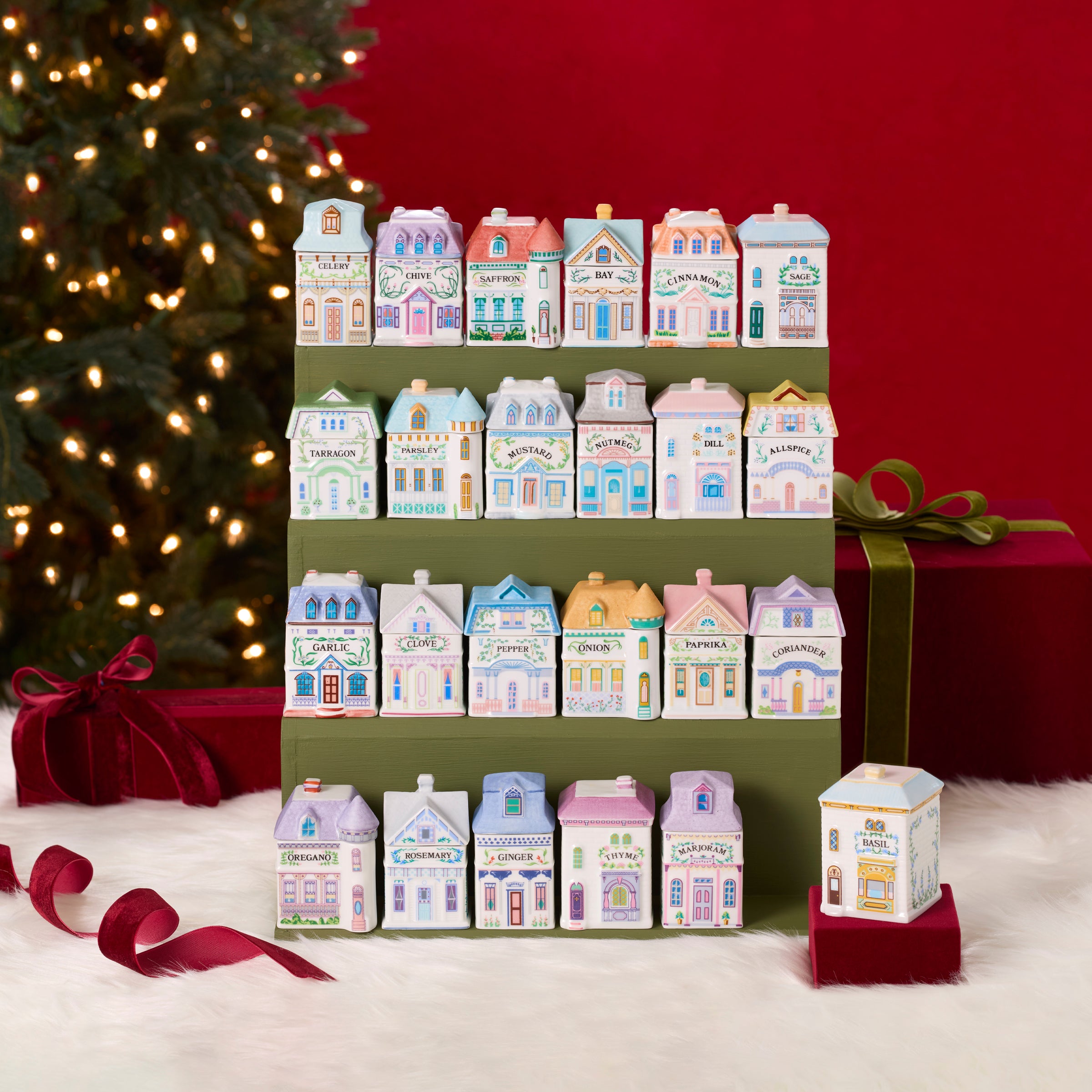 Take a pinch of ginger from a Georgian townhouse. Parsley from a Queen Anne villa. And a dash of pepper from your Swiss chalet! As lovely and whimsically nostalgic as our original 1989 collection, this 24-piece Second Edition of The Lenox Spice Village is here to bring storybook charm to your kitchen and your cooking. Each pretty pastel jar features artisan-crafted and hand-painted details that make each one special! Slight variation in color, texture, form, and finish are expected and a testament to the individual craftsmanship and one-of-a-kind beauty of each piece. May it spice up your life and sprinkle joy into your world every day!