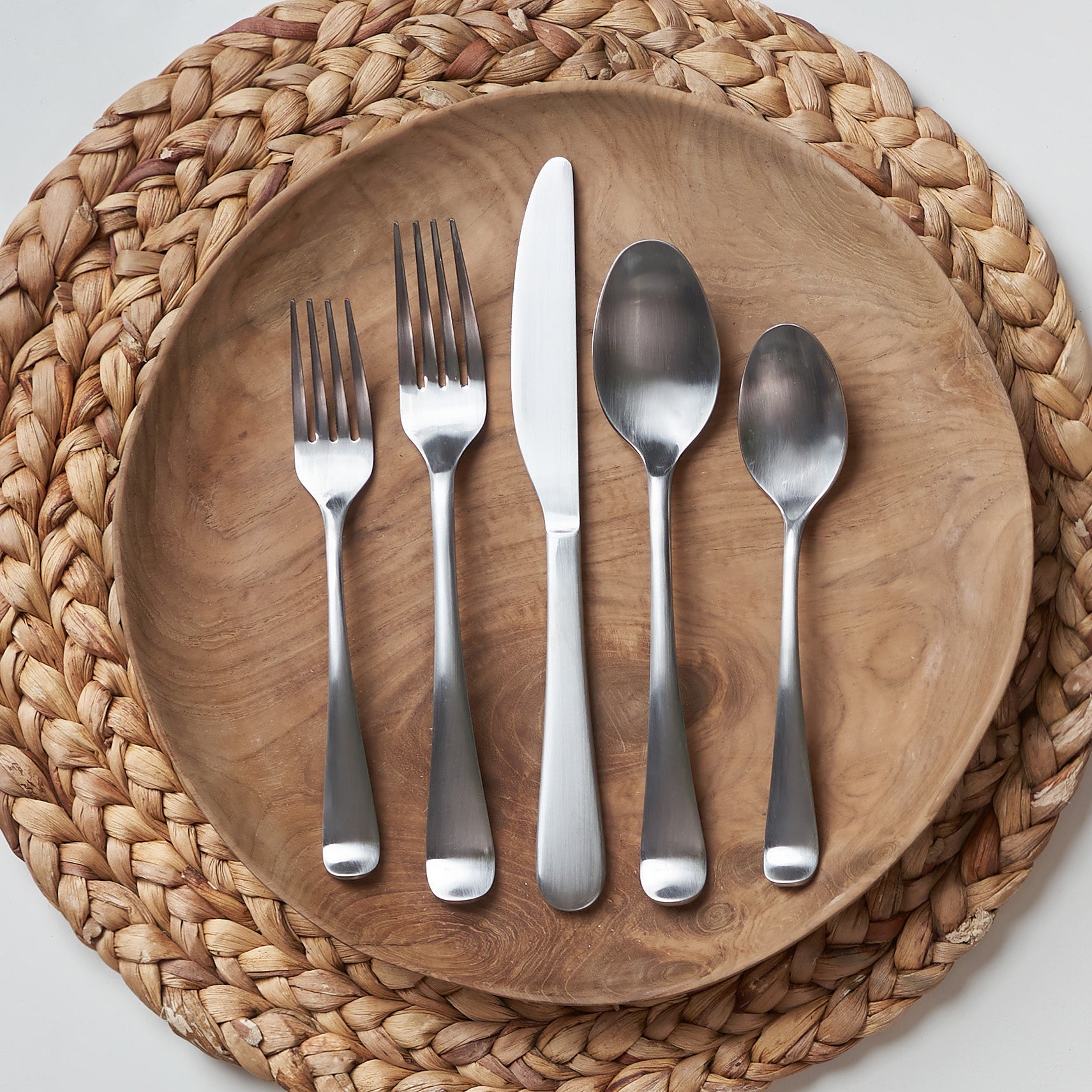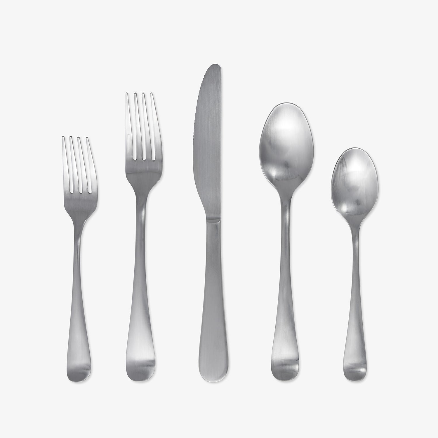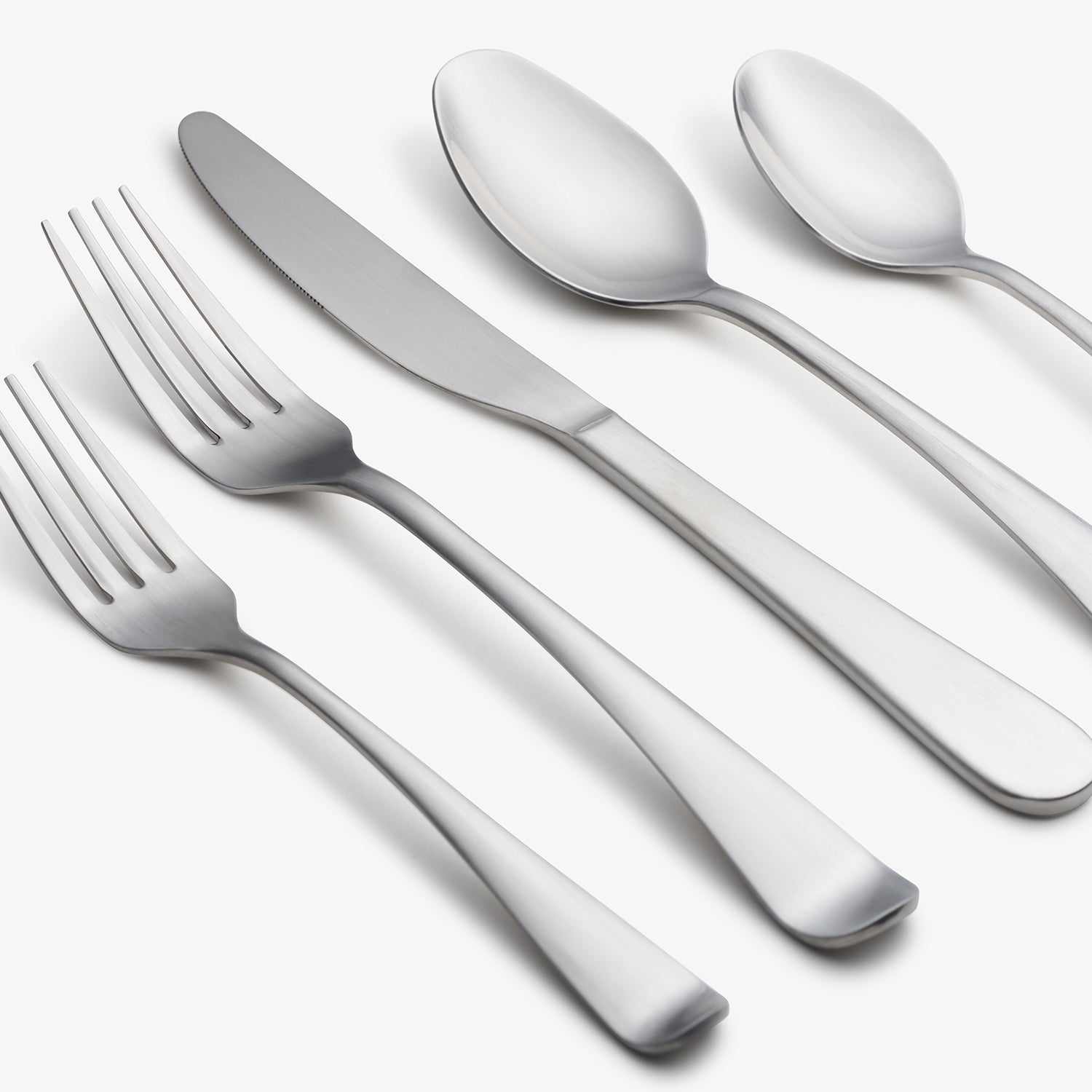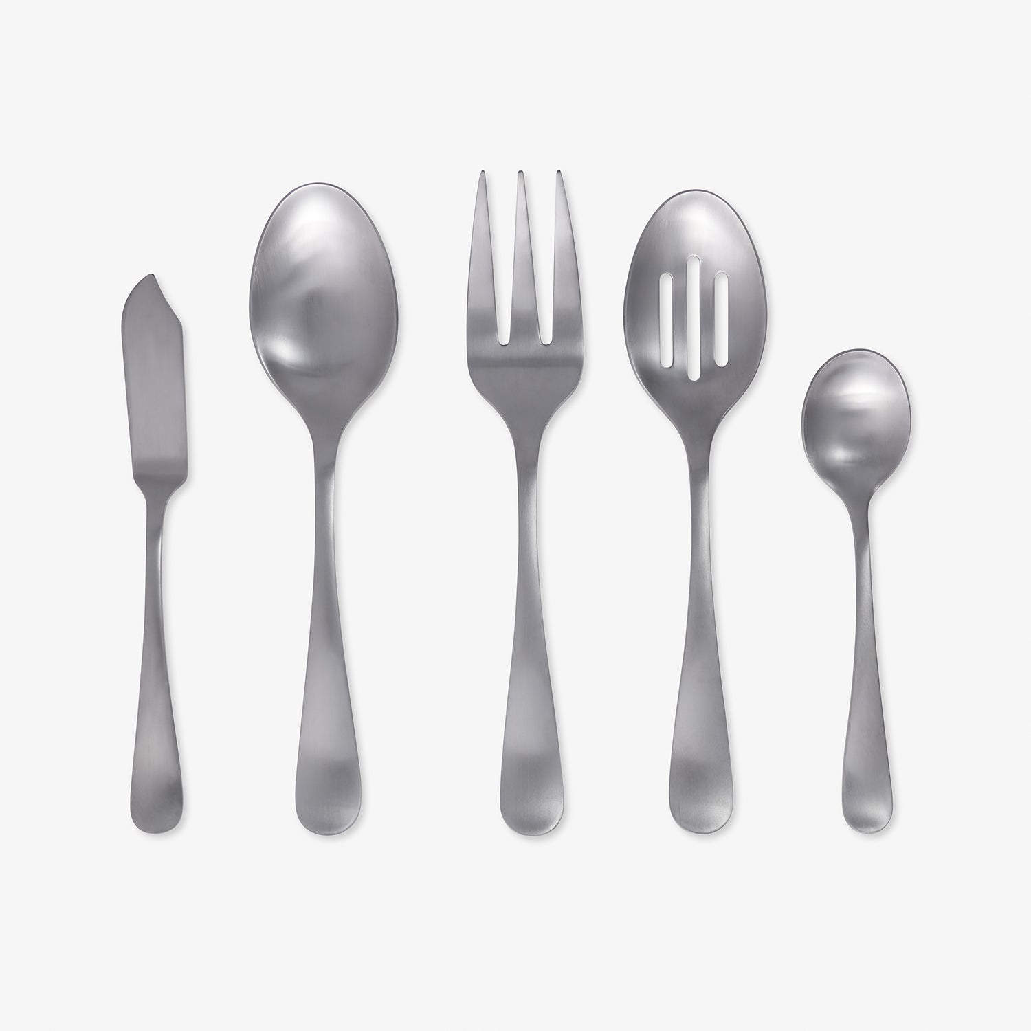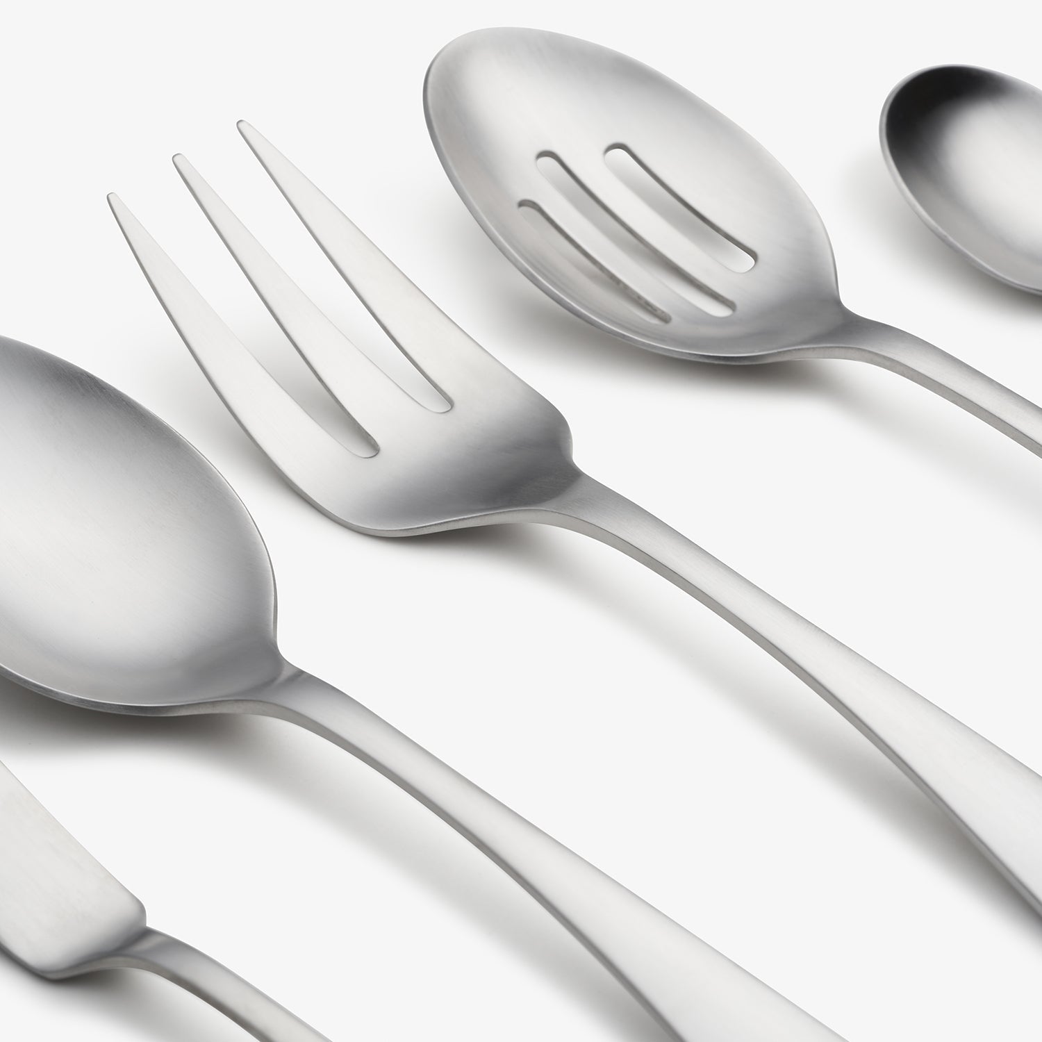 45-piece service for 8 with a comfortable and modern handle featuring a brushed, satin finish. This set includes a five matching serving pieces.