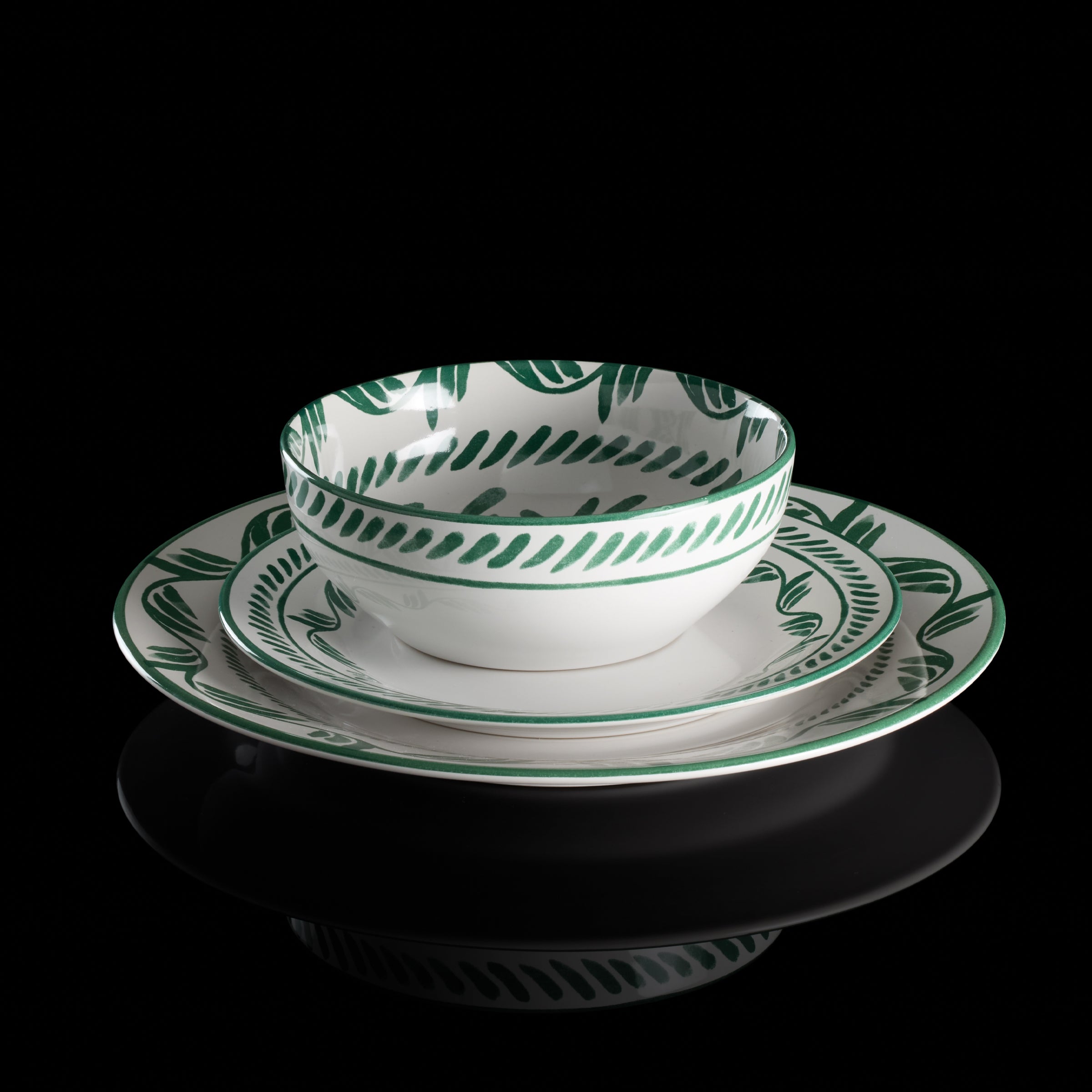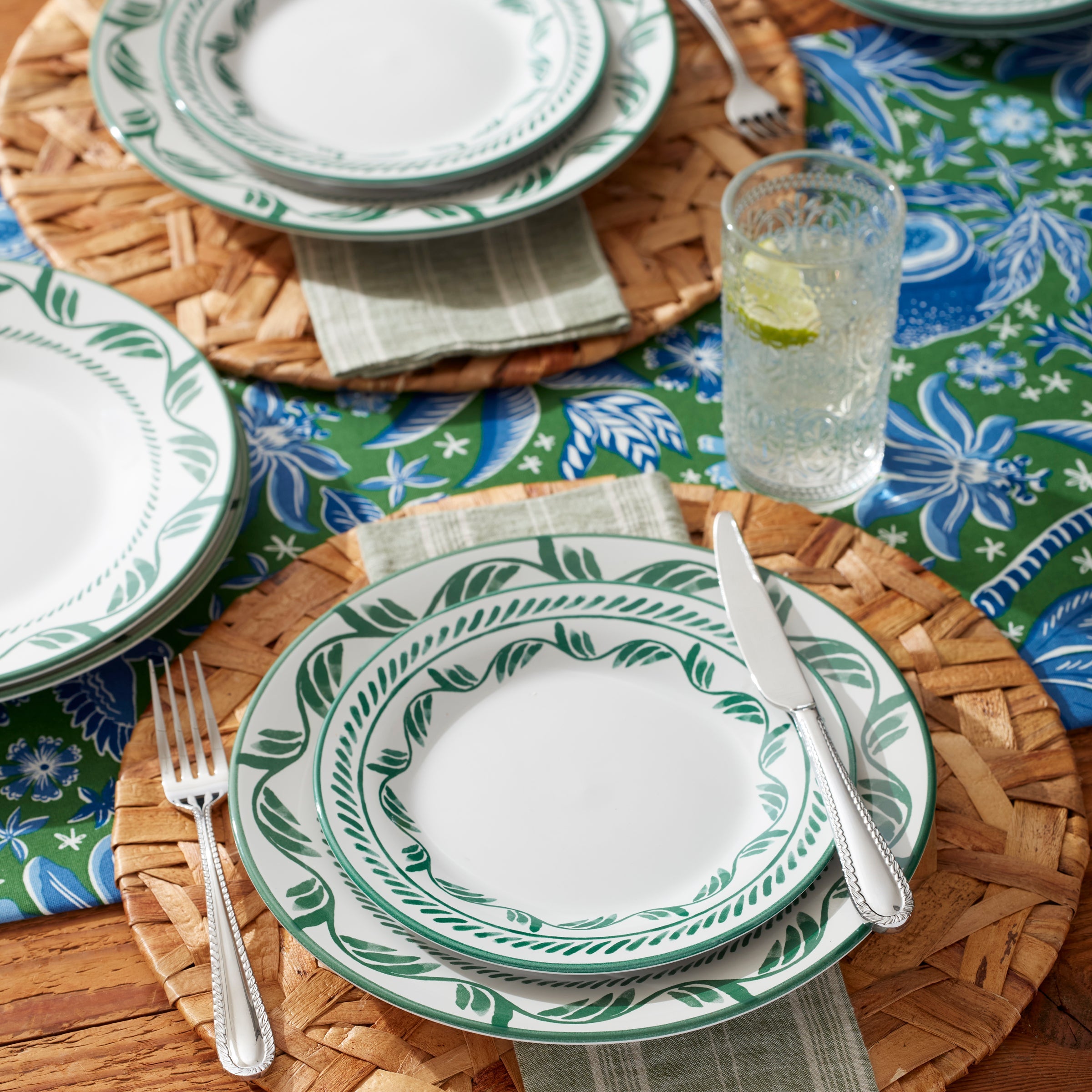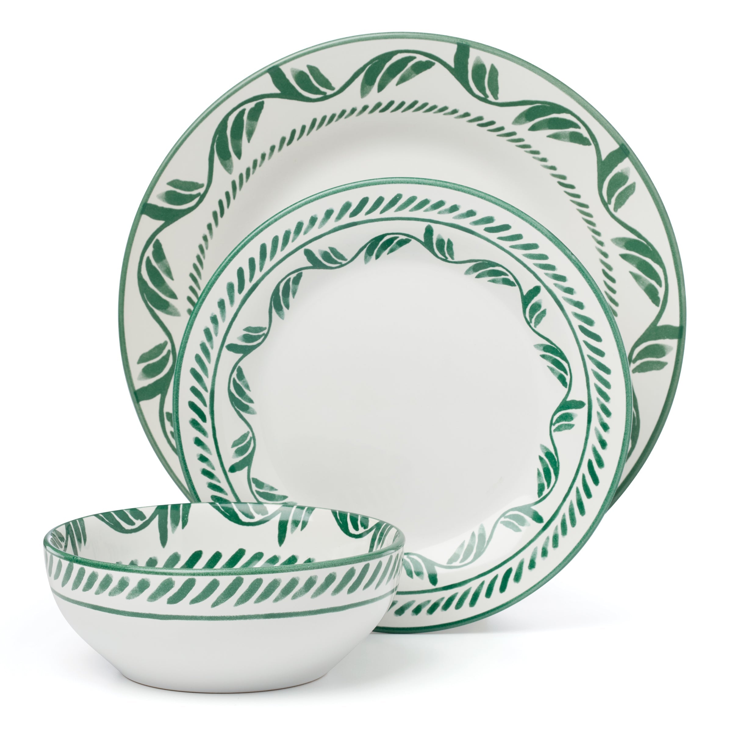 Earthy Solear stoneware, featuring culturally inspired motifs with a brushstroke appearance, brings artisanal spirit to sun-dappled gatherings with family and friends. This 12-piece dinnerware collection in green sets a pleasant tone for moments shared around the table.
