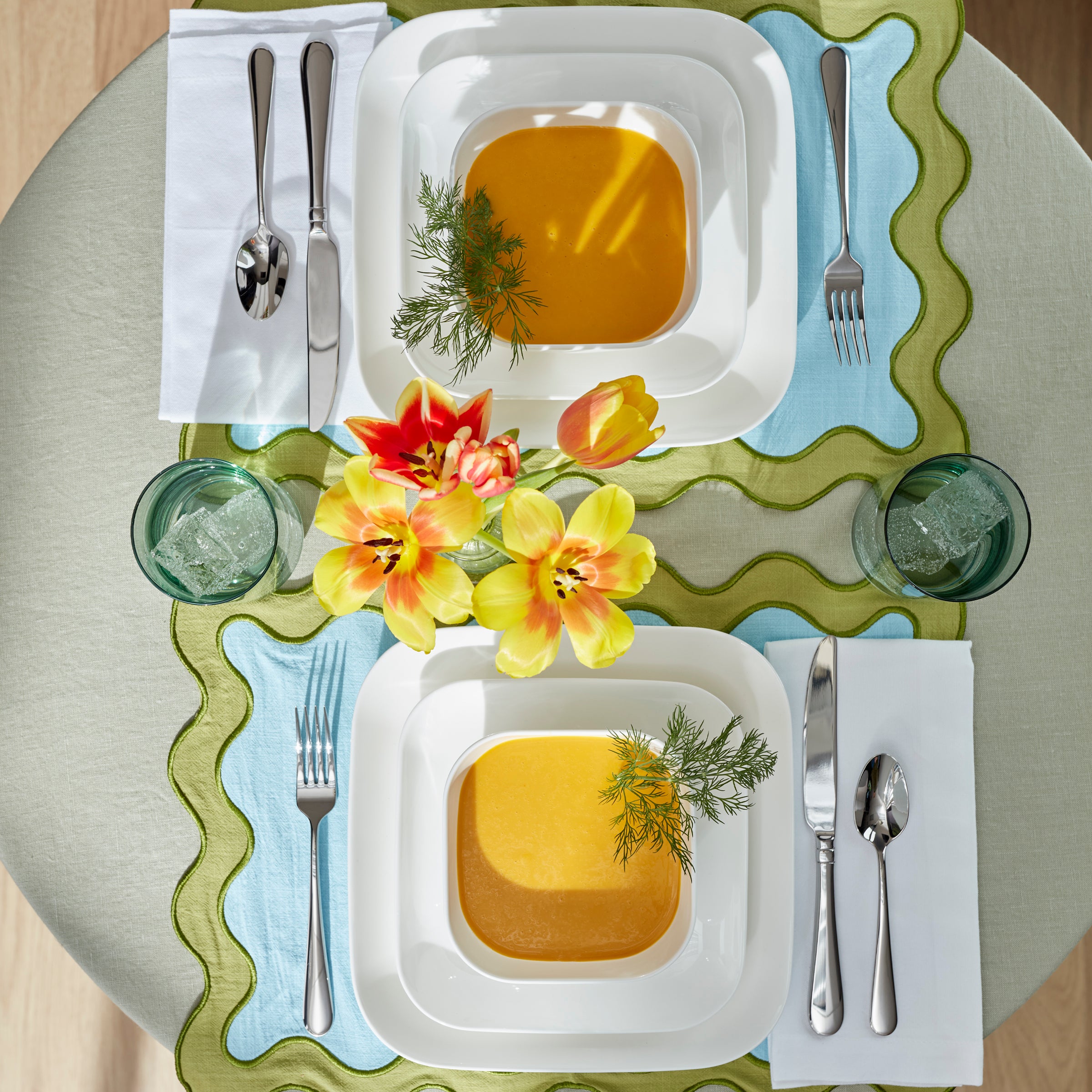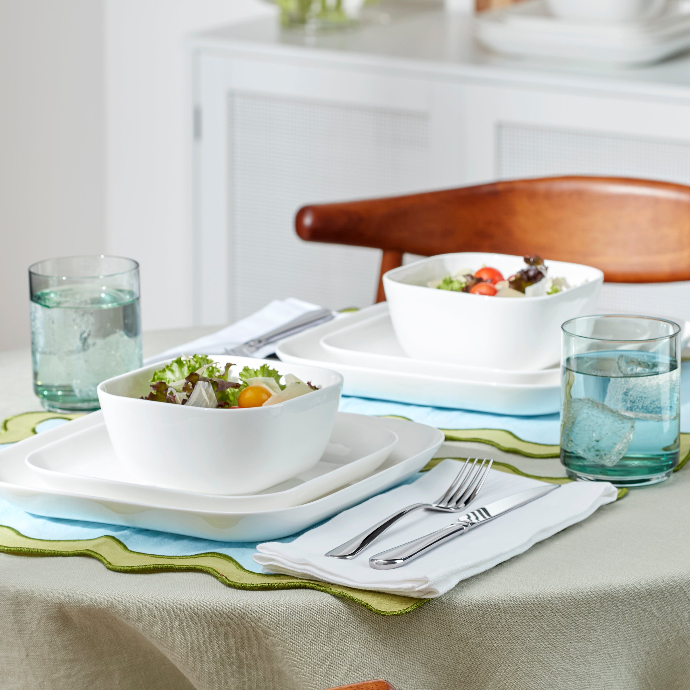 The world is complicated. Setting the table doesn’t have to be. Studio 1414 is refreshingly simple premiere bone china, expertly designed and passionately perfected to be your for-anything, for-forever dinnerware. It’s the essential staple you need and the something special you want, with a bright white glossiness that elevates every occasion. The chic Square shape of this 12-piece set acts as a canvas for your culinary creations. Dishwasher and microwave safe. Service for 4.