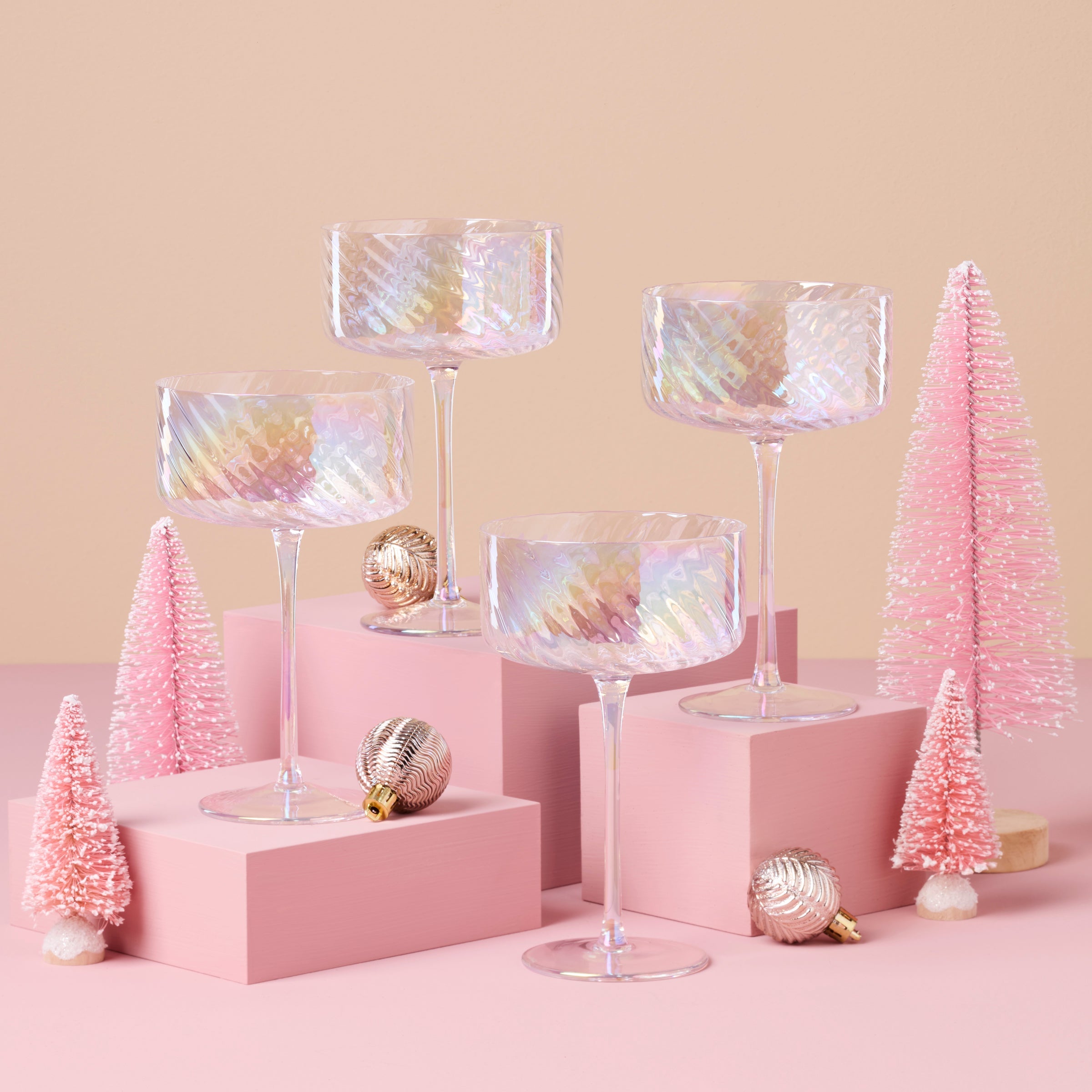 With joyfully colorful facets that reflect a brilliant ombré rainbow, these coupe cocktail glasses are an instant mood boost. Perfect for cheerful celebrations and friendly gab sessions, they’ll inspire bigger smiles and more colorful conversations every time you entertain.